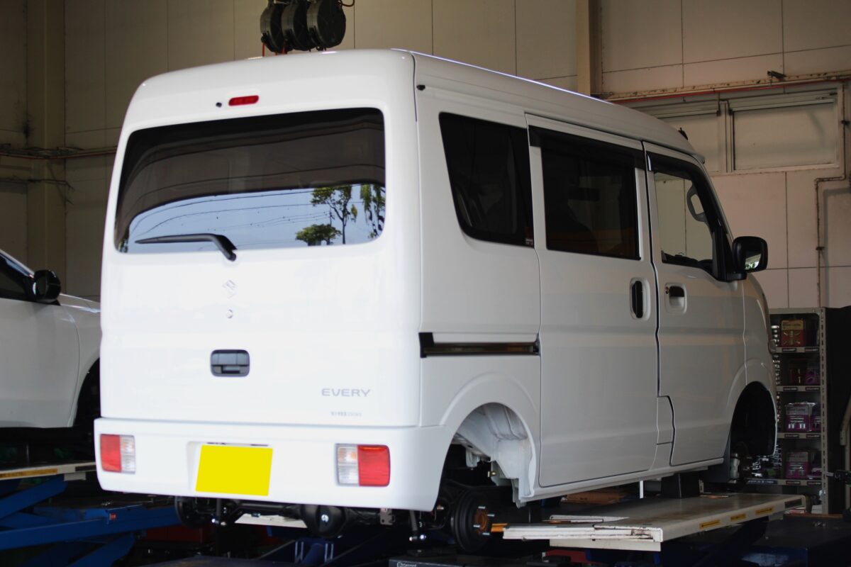 「働くクルマもカッコよく」このテーマを元に1st Stageとしてエブリィバンのローダウンに取り掛かります。