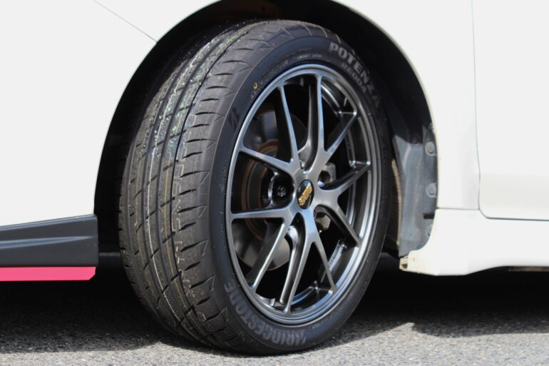 クルマの性能を最大限に引き出すためタイヤはポテンザRE004をチョイス