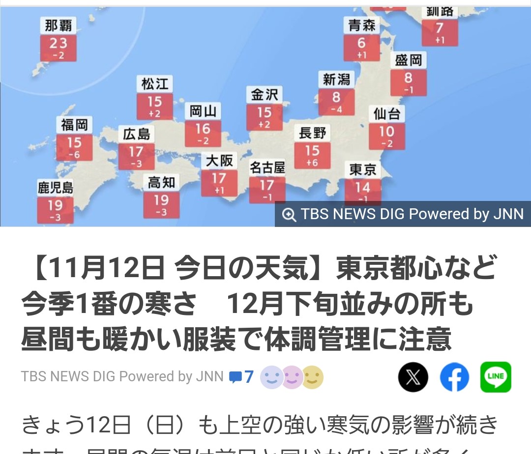今季1番の寒さ。。。12月下旬並みの所も。。。