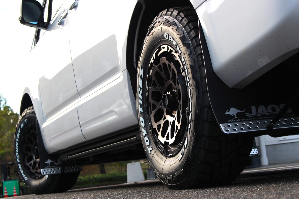 オフ系カスタムでご要望の多いマッドフラップも前後で装着。