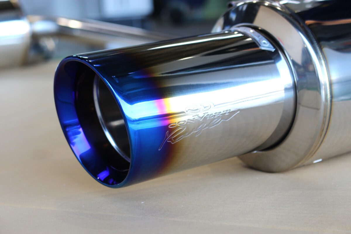 VN5型 新型レヴォーグのマフラー交換。ガナドール Vertex sports チタニウム製ブルー発色で彩り。