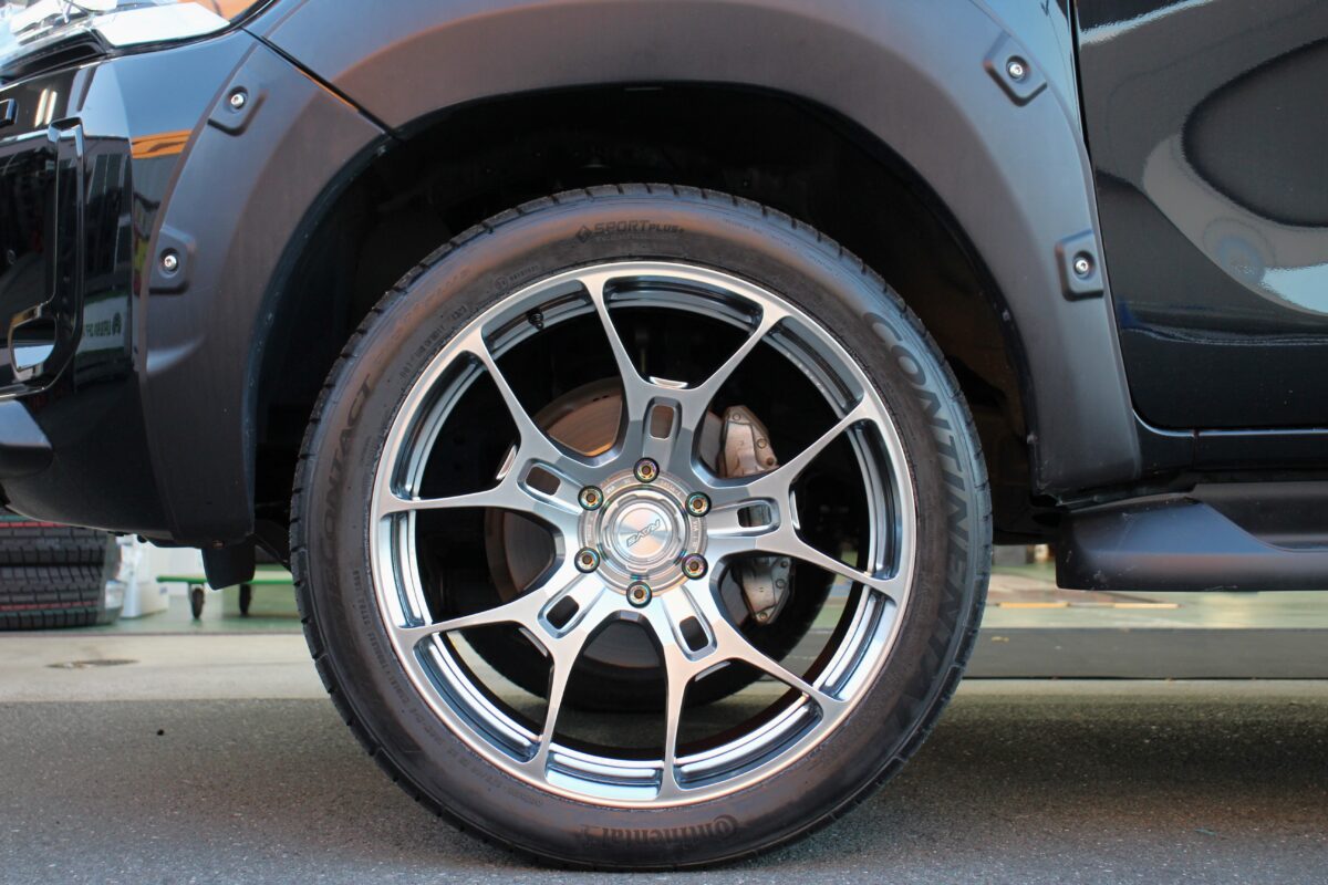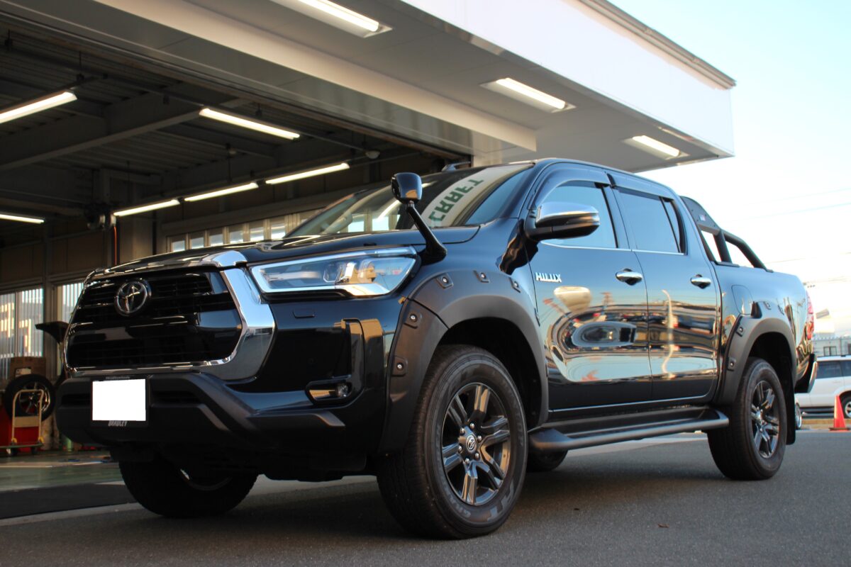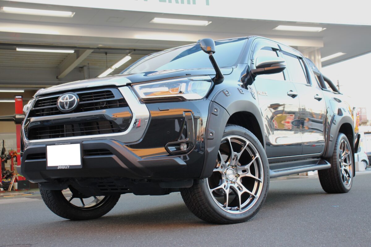 本日は当店では初となるハイラックスに大口径ホイールを取り付けし