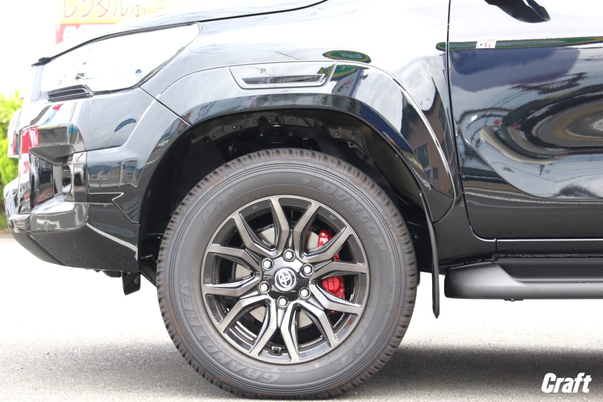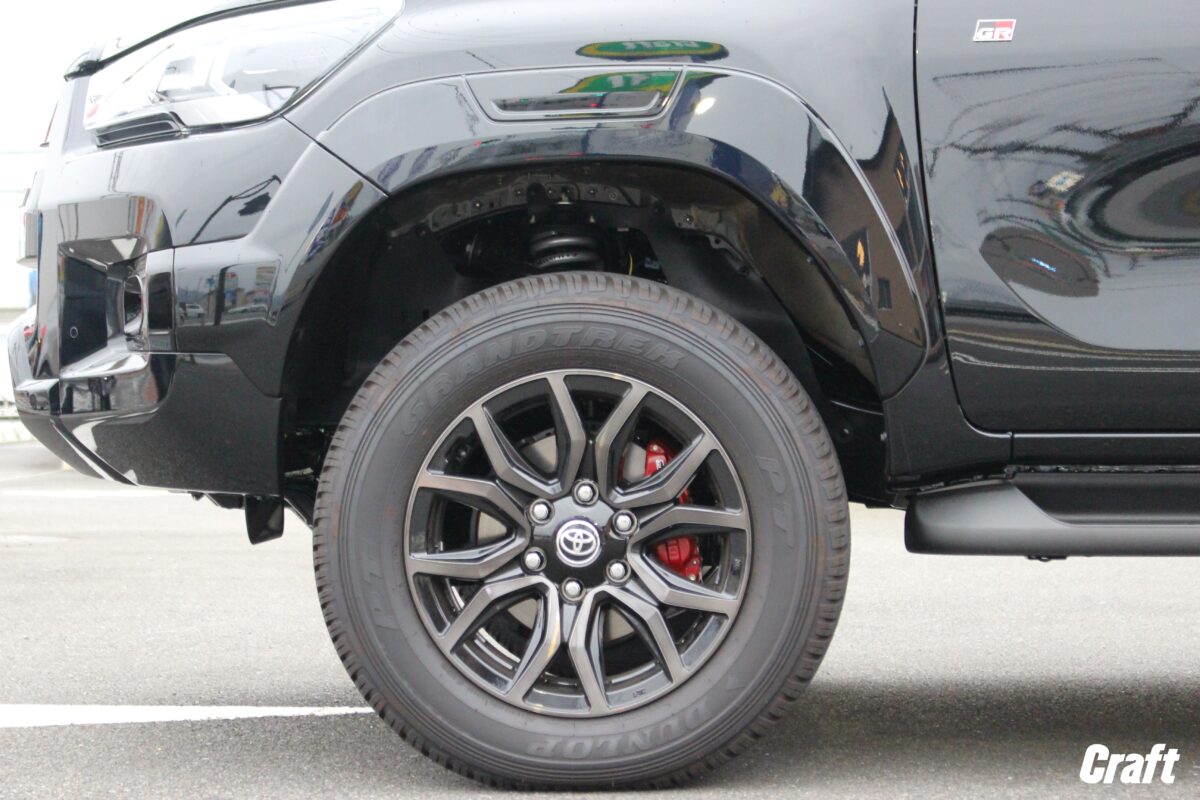 GRスポーツ専用ホイールを更にカッコ良く魅せるアイテムの装着でワイドなHILUXが完成っ 👍