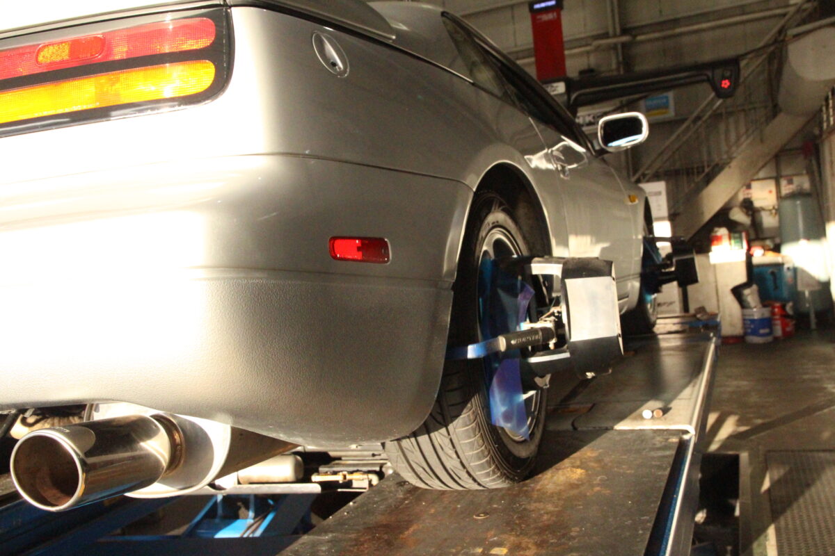 フロントのトゥ角、リヤのトゥ角、キャンバー角の調整を行い