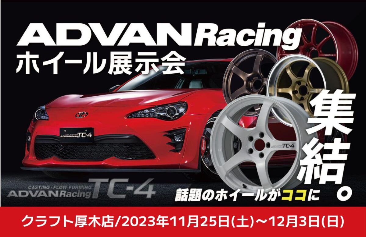 只今、クラフト厚木店にてアドバンレーシングホイール展示会を開催中!!