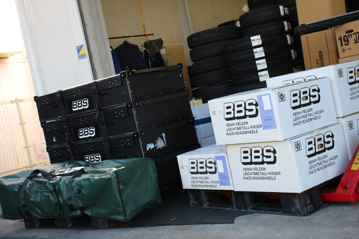 展示台の収納ケースまで「BBSロゴ」が入っているのに驚き。