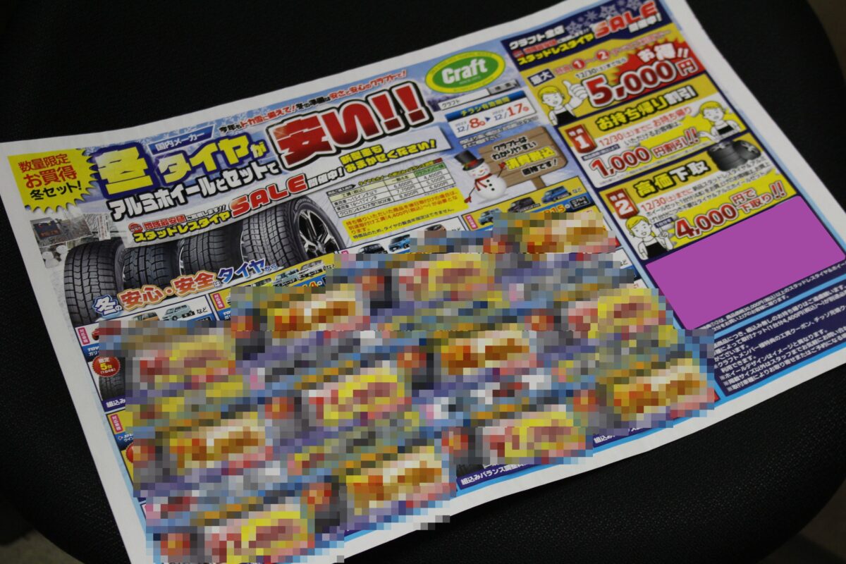 12/8(金)の新聞折り込みチラシにスタッドレスタイヤに関するお得情報が掲載されています!