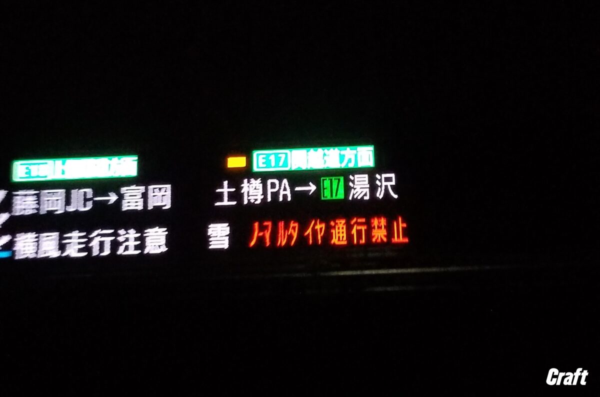 「 土樽PA → 湯沢 雪 ノーマルタイヤ通行禁止!! 」