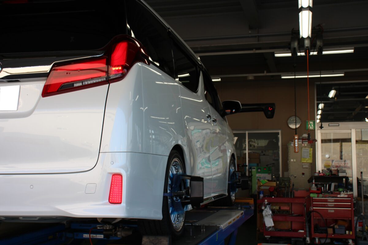 今回は純正タイヤが残り少なくなってきたタイミングでローダウン+20インチホイールへ交換していきます。