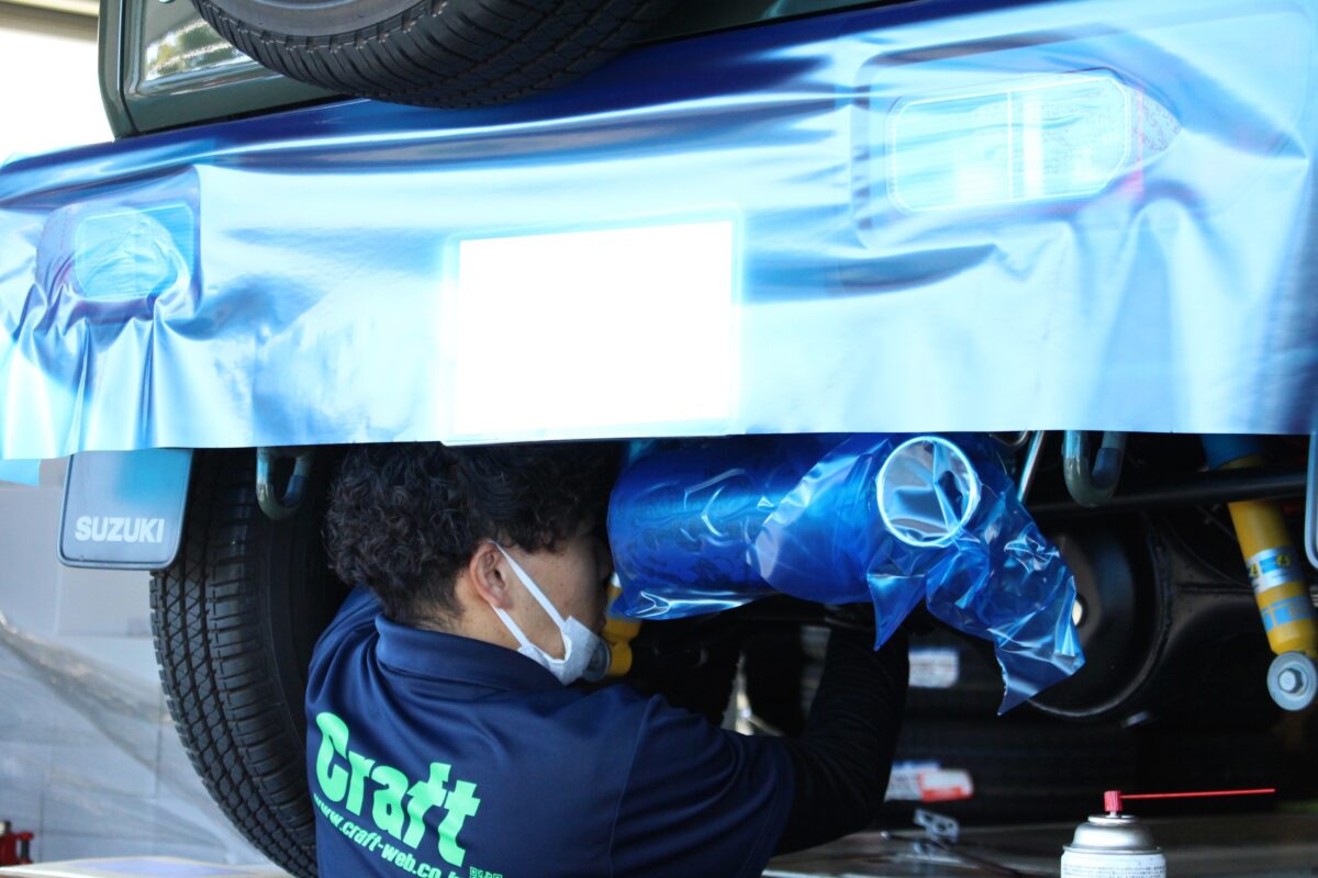 全体を保護テープで養生し取り付けていきます。