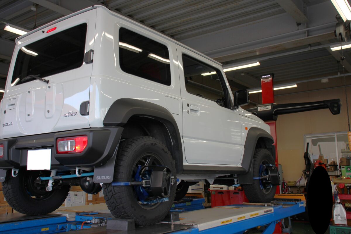 本日はカンサスを取り付けしてリフトアップを行いましたので