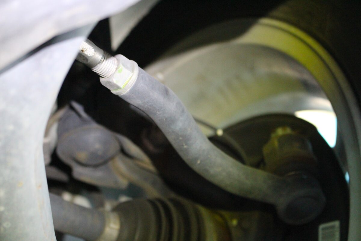こちらはタイロッドという部品。これを調整することでトゥを任意の角度へ調整できます。