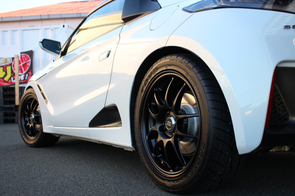 S660はホイールハウスが狭いため、タイヤを収めようと内側に入れすぎるとハンドルを切った際にインナーに干渉してしまいます。