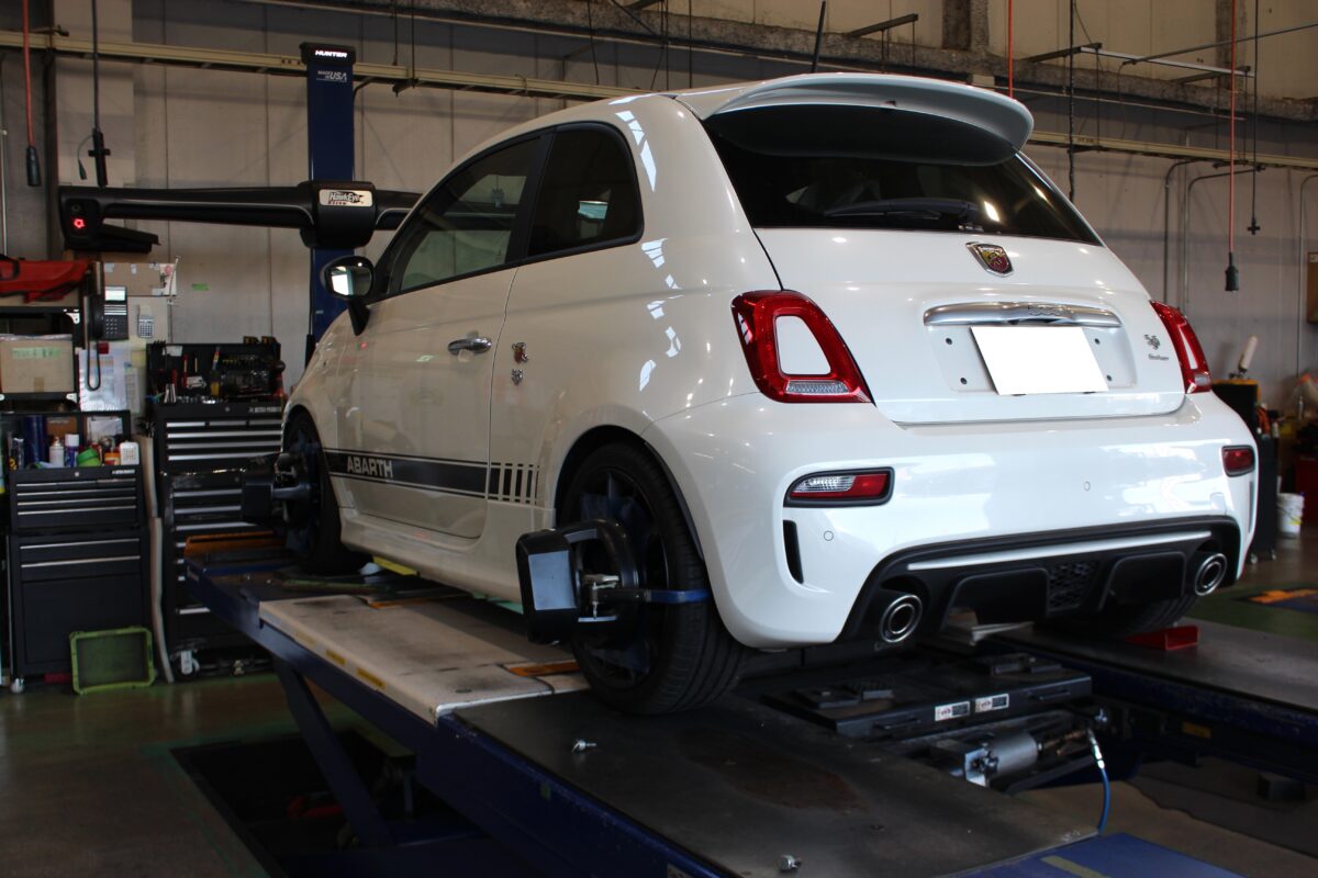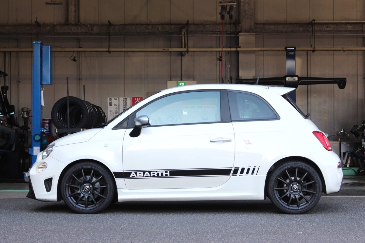 ユーロスタイルクラフトへの入庫数No.1!”アバルト595”本日はワンランクアップの仕上がりを目指したローダウンをご紹介です♪