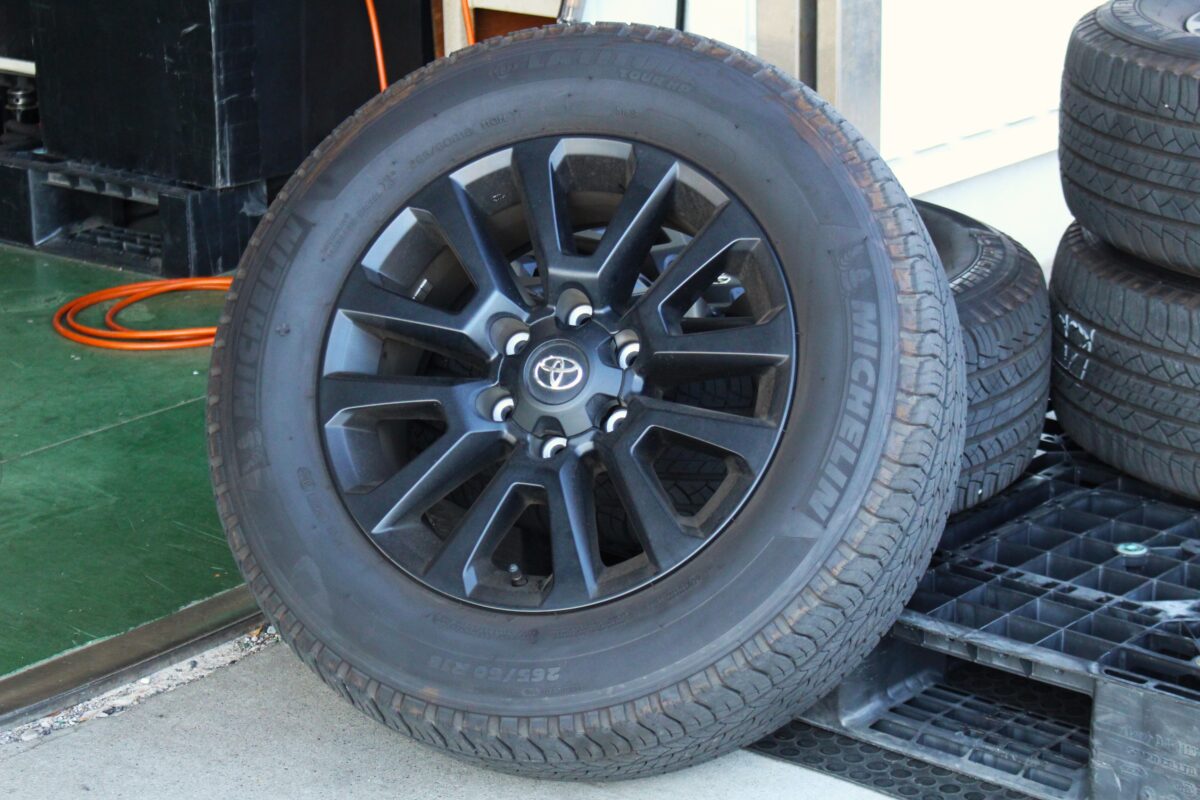 さて、ご入庫時に装着されていた150プラド マットブラックエディション 純正18インチは、