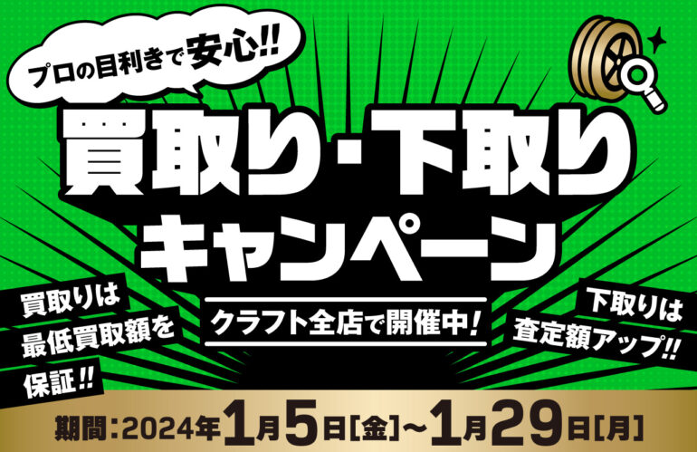 特に2024年1月5日(金)~1月29日(月)の期間中【買取り・下取りキャンペーン】を開催!