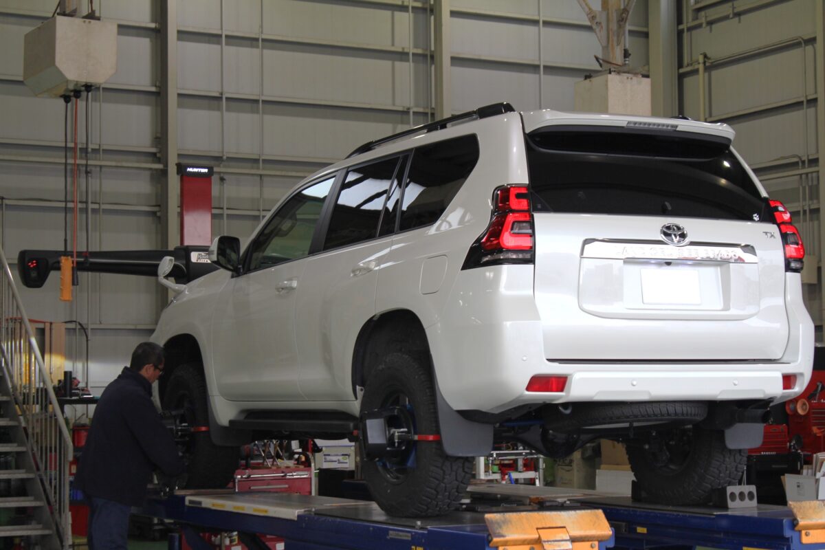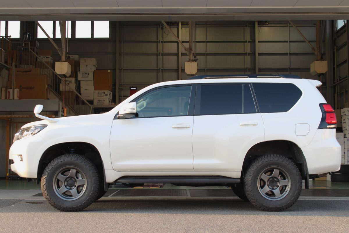 150プラドで人気な2インチアップに加えて補正パーツも今回は抜かりなく装着
