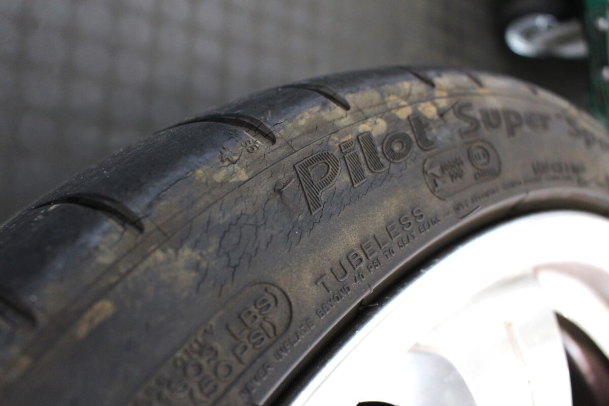 タイヤの残溝はまだありますが、ひび割れが見受けられますね。