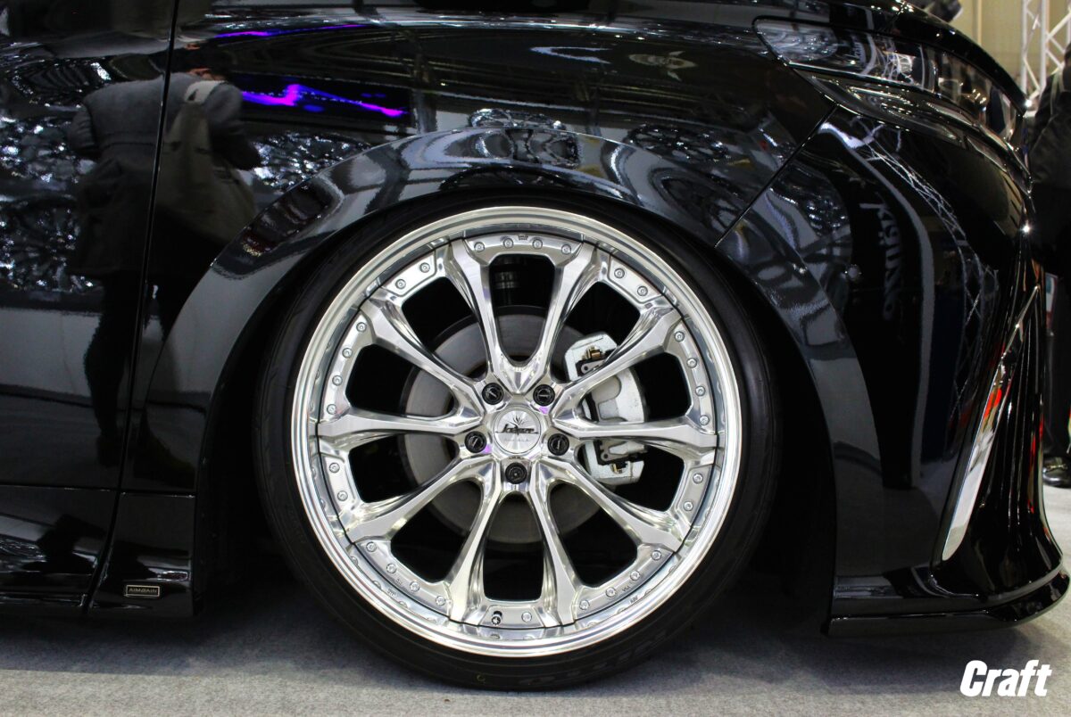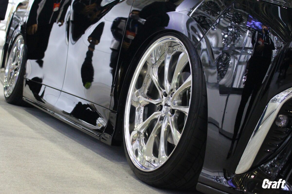 現地のウェッズブースには40アルファードが展示されており、本日ご紹介の新作ヴェルサムが装着されておりました。