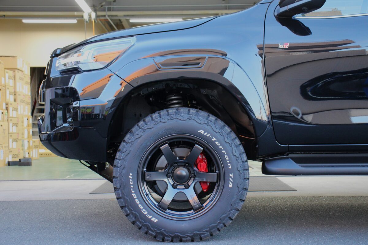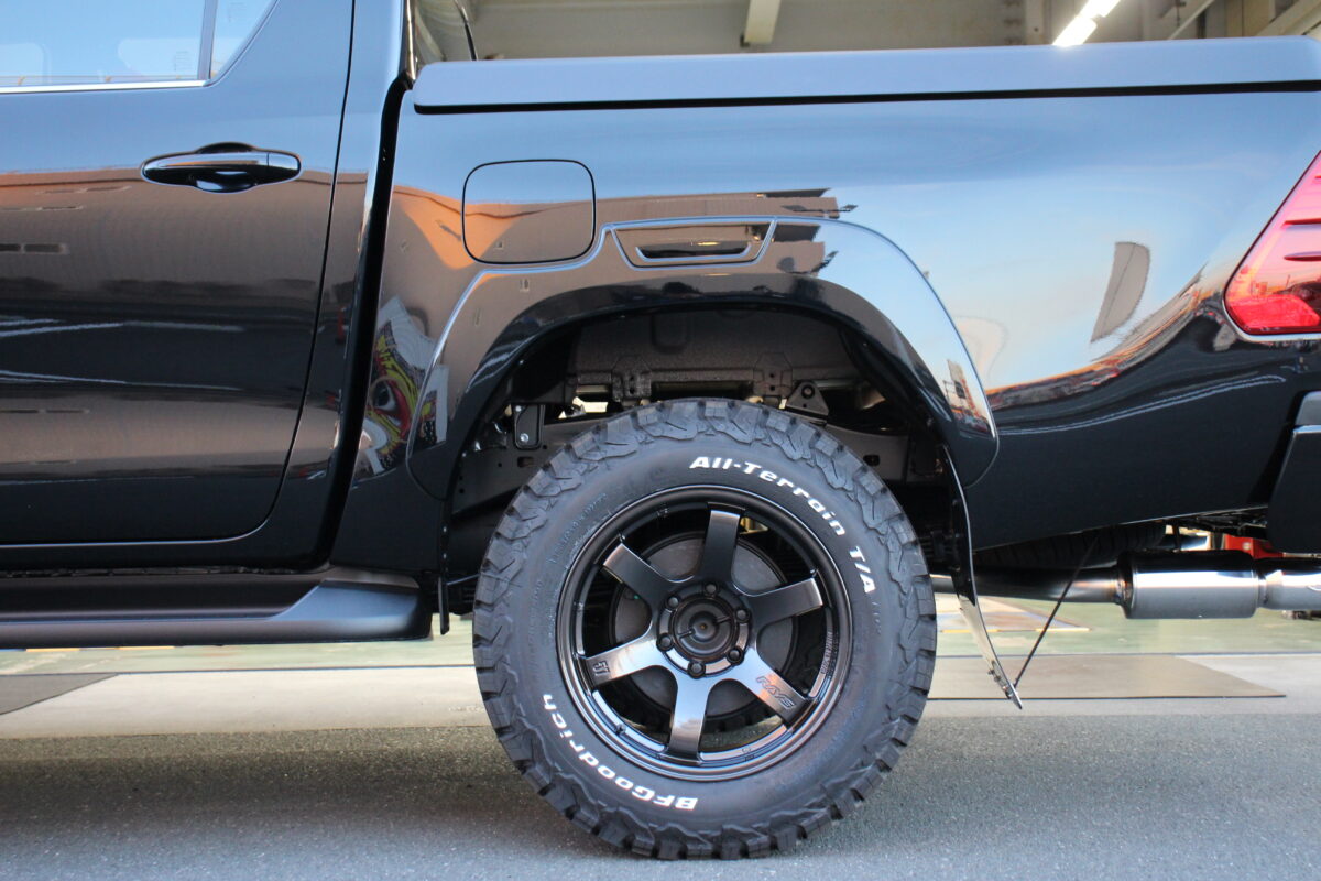 タイヤが通常のハイラックスに比べると厚みが少し減ってしまいますので。
