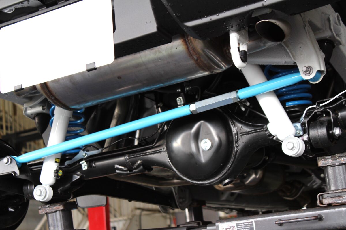 リフトアップ時に起こるホーシングのズレを解消するラテラルロッドも前後に装着