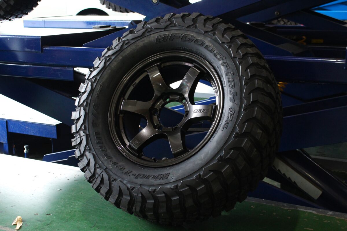 ご入庫時のスタイルは、純正17インチ+BFG KM2を合わせた仕様。