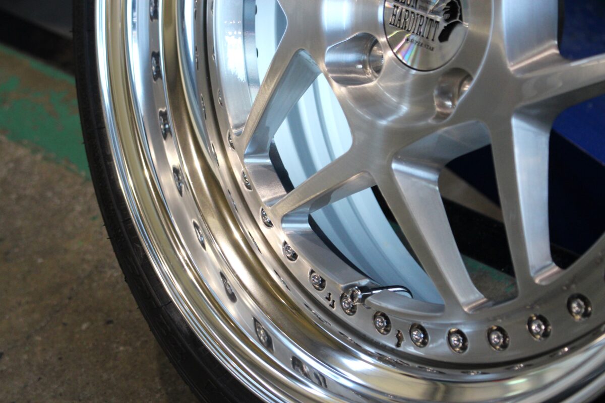 深リム装着の前準備としてアライメント調整~実車計測を実施。お客様と入念な打ち合わせをさせていただき、完成をイメージ!!