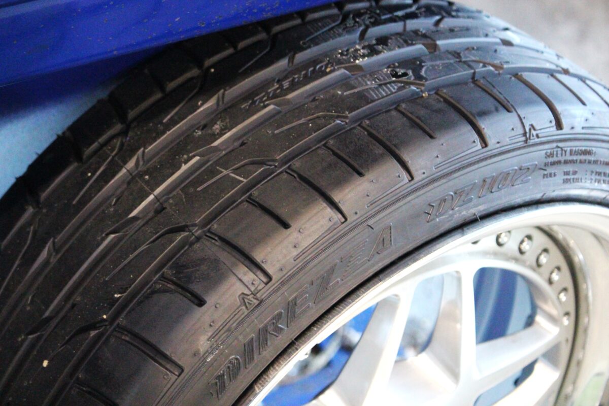 ダンロップのスポーツタイヤブランド「DIREZZA-ディレッツァ-」DZ102は快適性を備えたタイヤとして人気です。リム幅+タイヤ幅のバランスで仕上がりに差が出ます!ヒパッリたい・ムッチリさせたい…そんなご相談もお任せ下さい(*^^*)