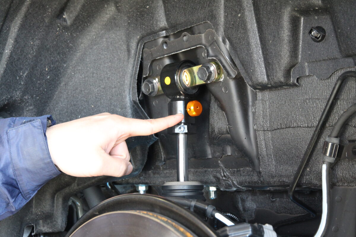 アムテックスのキャンバーボルトで1度30分程ネガティブへセッティングを行っておりますので、