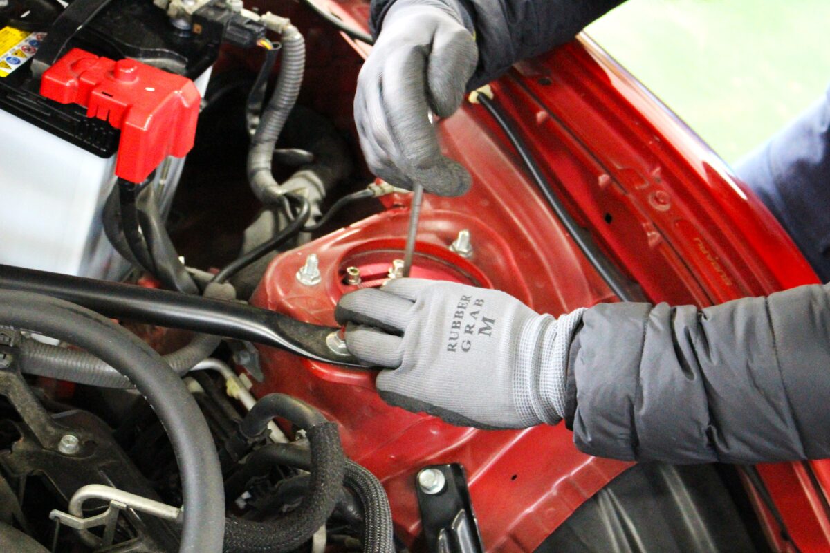 フロントにキャンバー調整式アッパーマウントが装着されており