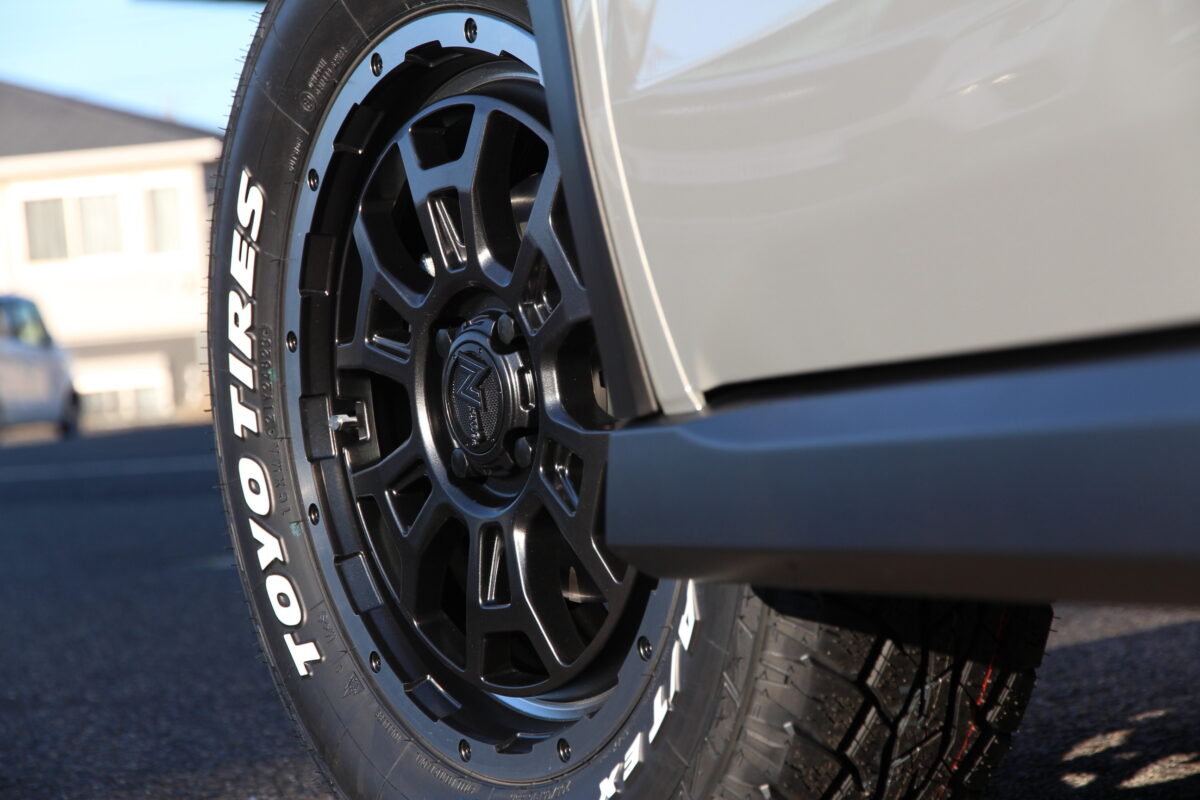 ホイールはブラック系に、タイヤをホワイトレターでワンポイント。