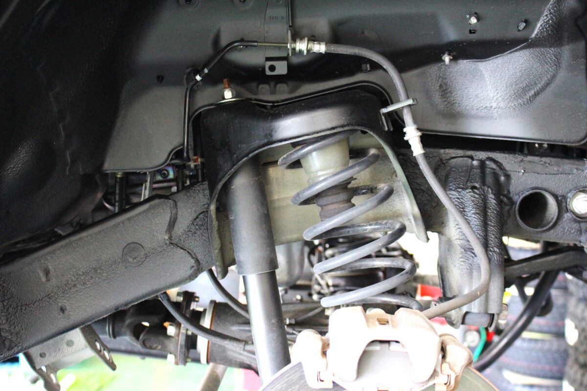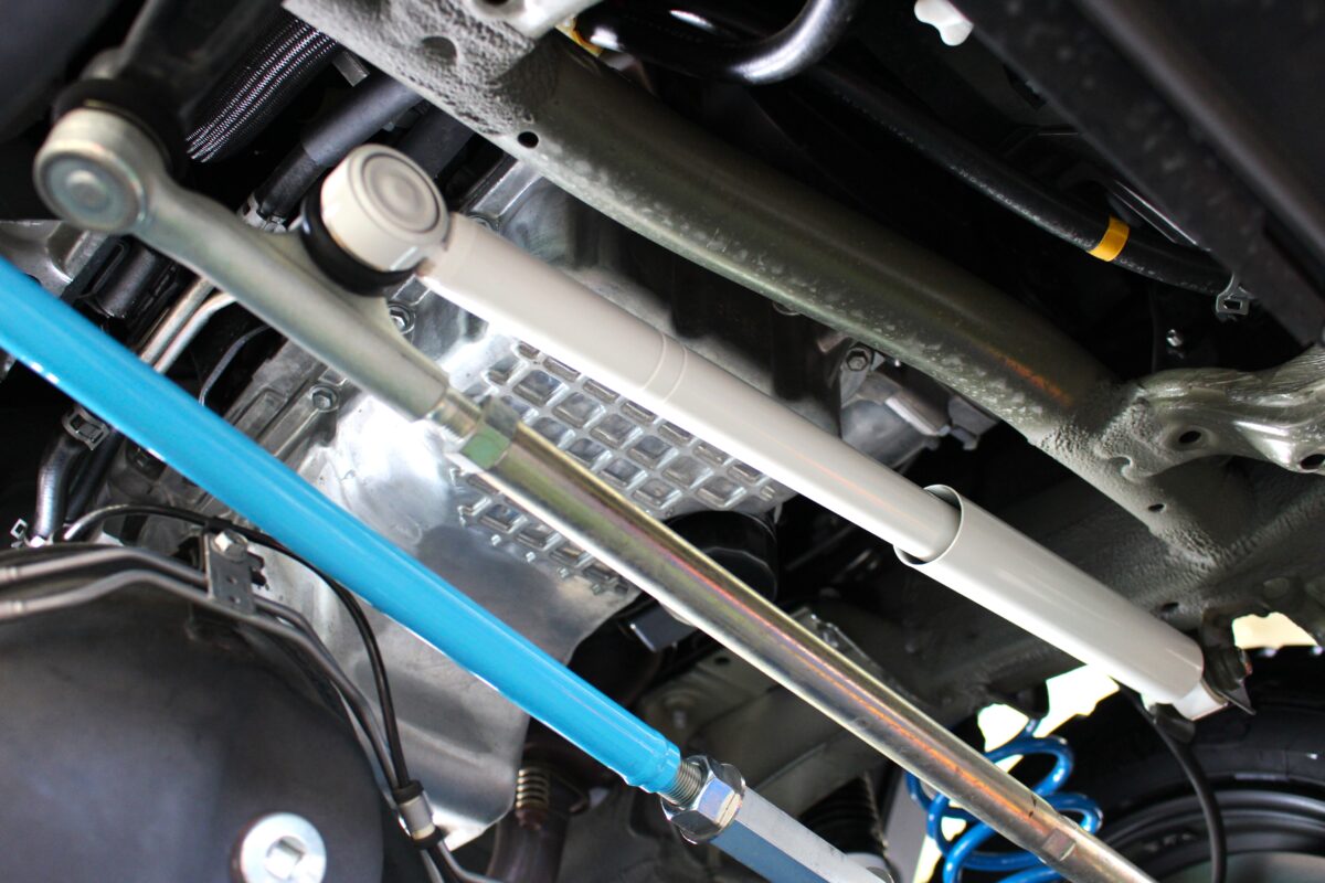 今回はオフロードタイヤ装着にあたりステアリングダンパーも交換。