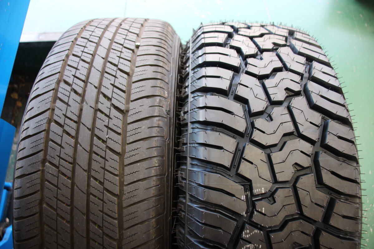 純正タイヤと比較するとかなりゴムのブロックサイズが違いますが