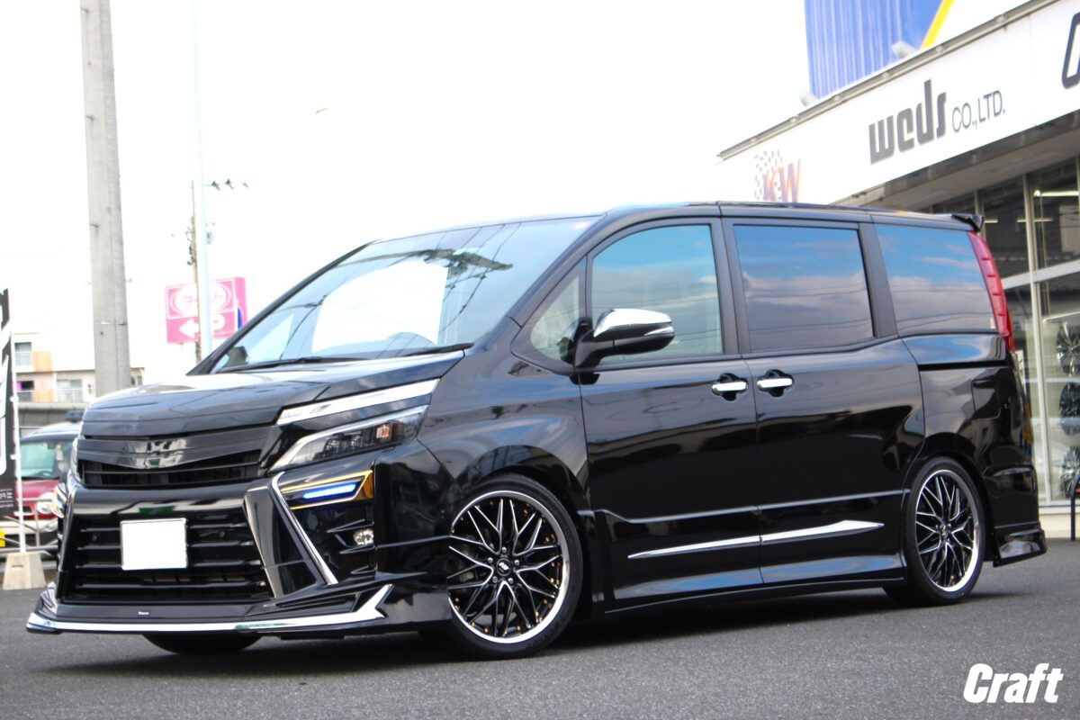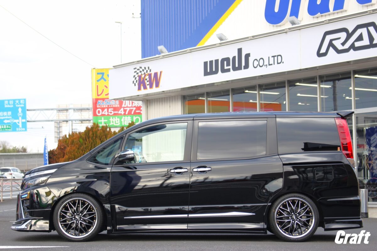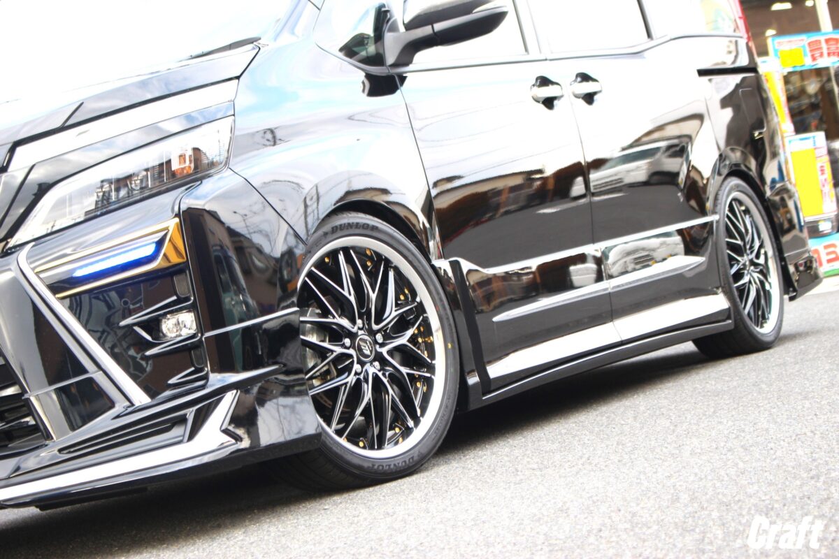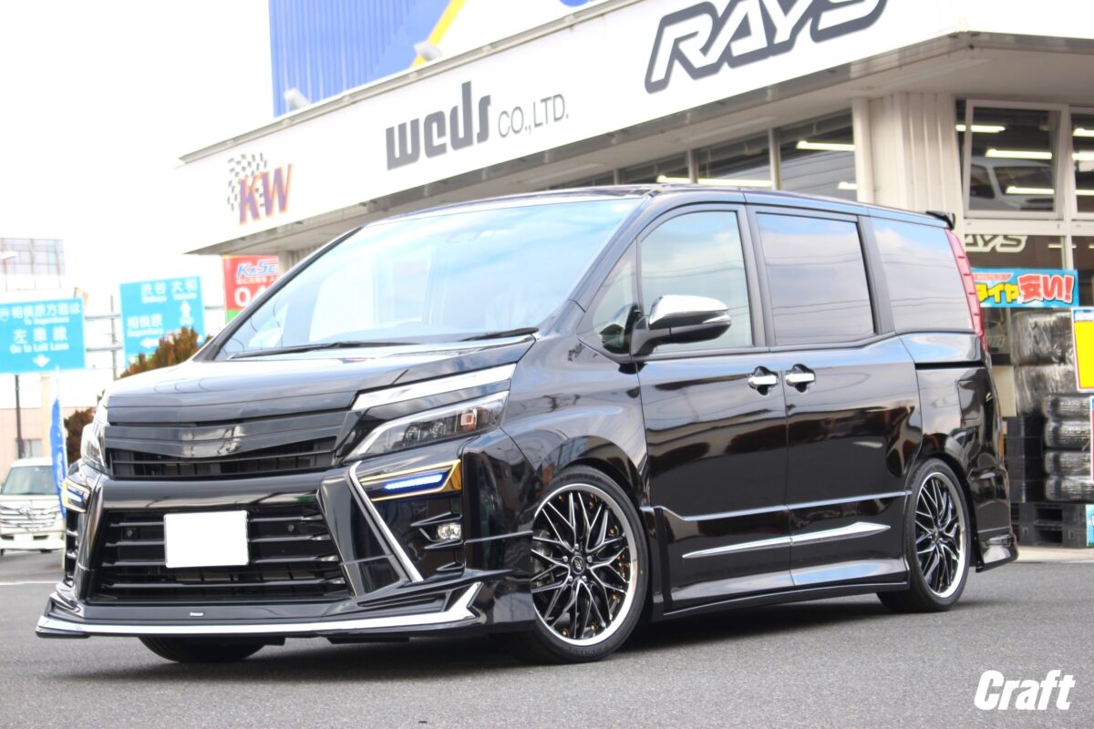 ■4WDの90VOXYが大変身!!車高も出ヅラも拘りました!   いつもありがとうございます!!クラフト厚木店・のりかずです!   本日ご紹介するのはK様・90VOXY。   まずは簡単に今回施工するクルマをご紹介します。     車種は現行の90VOXY・4WDモデルとなります。   4WDモデルは2WDモデルと比べ車高が高めに設定されていました。   特にリヤはだいぶフェンダーの隙間が空いていますね。   「4WDモデルを納車したはいいけどフェンダーの隙間が気になるな。。」と思ってしまう方、きっといますよね👀   今回ご依頼いただいたK様も同じく気になっていました。     愛車はほぼ毎日目にすると思うので1度気になってしまえうと今後もず~っと気になってしまう事でしょう   であれば思い切って車高を下げるのが手っ取り早い方法だと思います!     こちらは施工後の1枚ですが、4WDとは思えない変化ですよね✨✨   このぐらいの車高であればモヤモヤもなくなりそうですよね!!   そして今回はローダウンだけでなくタイヤ・ホイールも一緒にご購入いただいていました!     ご購入いただいたアイテムは「WORK シュヴァート ブルネン」となります!   皆様はよく「ツライチ」と言ったワードを見聞きすると思います。   「ツライチ」は人それぞれ捉え方が違うので僕が思う「ツライチ」と皆様が思う「ツライチ」はきっと違っていることでしょう。   仮に僕が言う「ツライチ」を作った場合、人によっては「ちょっとやりすぎかも。。」と思わせてしまう可能性があります。   なので、いろいろとオーナー様の意見を聞いてホイールサイズを作るのですが、「攻めたホイールサイズしかない」もしくは「ツライチとは程遠いサイズしかない」などホイールによっては制限がかかってしまう場合があったりもします。   逆に制限が少なく自由度が高いホイールも実は存在します👀     そして「WORK シュヴァート ブルネン」もホイールサイズの制限が少なく自由度が高いホイールに当てはまります   制限が少なく自由度が高いホイールと言うのは「2ピースホイール」と呼ばれるホイールです。   皆様も見聞きしたことがある単語ではないでしょうか??   「2ピースホイール」は出ヅラの調整がとてもやり易く僕らスタッフもオススメしています!   調整がやり易い理由として、「2ピースホイール」は部材がリム・ディスクの2つから構成されています。   そしてホイールサイズ(インセット)が決まると、そのホイールサイズに合わせた位置にリムとディスクを溶接で接合します   そしてこの溶接作業は1mm単位で位置調節ができる為、出ヅラへも直結するわけです。     出ヅラの仕上がりはこんな感じ。   1mm単位で調節ができる「2ピースホイール」であれば「もう少し出ヅラを出したかった」「もう少し出ヅラにゆとりを持ちたかった」などの手が届きにくいサイズを作ることができますよ!   出ヅラに拘りたいって方はぜひ2ピースホイールで検討してみてくださいね✨✨     K様この度はクラフトをご利用いただきありがとうございました!!!   車高が高かった4WDモデルが大変身しましたね!!   そして気になっていた出ヅラですが、程よく仕上がっていますよね♪   また、カスタムやタイヤ交換などクラフトをぜひ利用くださいね♪   管理番号:0412511221007