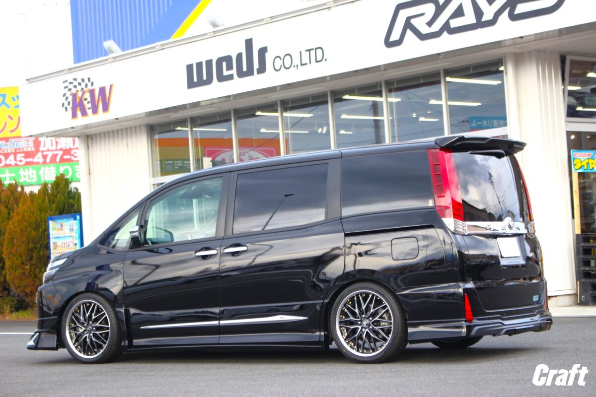 マルチピースホイールを使い拘りの出ヅラで完成!!   リム幅&インセットを自由にオーダー出来るからこその仕上がりですっ👍     いつもありがとうございます、クラフト厚木店・佐藤です。   本日のご紹介はO様・80ノアになりま~す!!     ローダウンを行い19インチ仕様に仕上がっておりますが、このホイールは今までの仕様。   この度、ホイールを新調するにあたり車輛も少し仕様変更を行いました!!   ご購入いただいたホイールはWORKの2ピースホイールなので実車計測を行いバッチリ攻めたサイズでオーダーしましたよっ♬♬     コチラが全体の画像になります。   とてもバランス良く仕上がっていますよねっ☆☆   80ノア・ヴォクシーでは1番人気の19インチを装着!!     タイヤサイズは225/35-19をチョイス!!   ノア・ヴォクシーの場合、215/35-19を装着するオーナー様もいらっしゃいますが、走る事やタイヤの寿命を考えると225/35-19の方がより安心。   乗り易さと見た目の良さが両立出来るのがこのサイズなんですよね。     車高も地上高ギリギリまで下がっているのでフロントやリアのエアロには注意が必要。   でもカスタム好きのオーナー様ならエアロに気を使いながら乗るっての言うのもある意味ステータスだったりするんですよね。笑   それと、タイヤ止めが小さい場所を選んで駐車するなんてのも良くある話。。。     そんな拘りの80ノアですが、実はリアにもキャンバーが付けてあるんです!!   なのでホイールサイズは前後違いでオーダー。   そしてリアには8.5Jを装着しているんですよぉ~✨   上の画像を見ていただいても分かる通り、出ヅラは目一杯!!   もちろんスペーサーは使っていません。   スペーサーを使わなくてもこの出ヅラを可能とするのがWORKの2ピースホイールなんです!!     「 オーダーインセット 」 と言う言葉を耳にした事があるかも知れませんが。。。   オーダーインセットとは設定出来るインセットの範囲内で自由にインセットを決める事が出来るシステム。   そしてその自由度とは 「 1mm単位 」 でインセットを指定出来るんですっ!!   そこでクラフト厚木店得意の実車計測が力を発揮するって訳です👍   愛車のツライチカスタムを実現したいオーナー様はぜひご相談下さいねっ☆☆     O様、この度はご購入誠にありがとうございました!!   そして遠方よりお越しいただきました事に感謝ですっ♬♬   クルマの仕様、そして拘りのホイールと仕様変更が上手く行きましたねっ👍   それではまたのご利用よろしくお願いいたしま~す☆☆           「 クラフト営業日カレンダー 」はコチラから⇐⇐⇐   「 クラフトメンバーシステム 」はコチラから⇐⇐⇐       クラフト厚木店インスタグラムもぜひご覧下さいっ!!