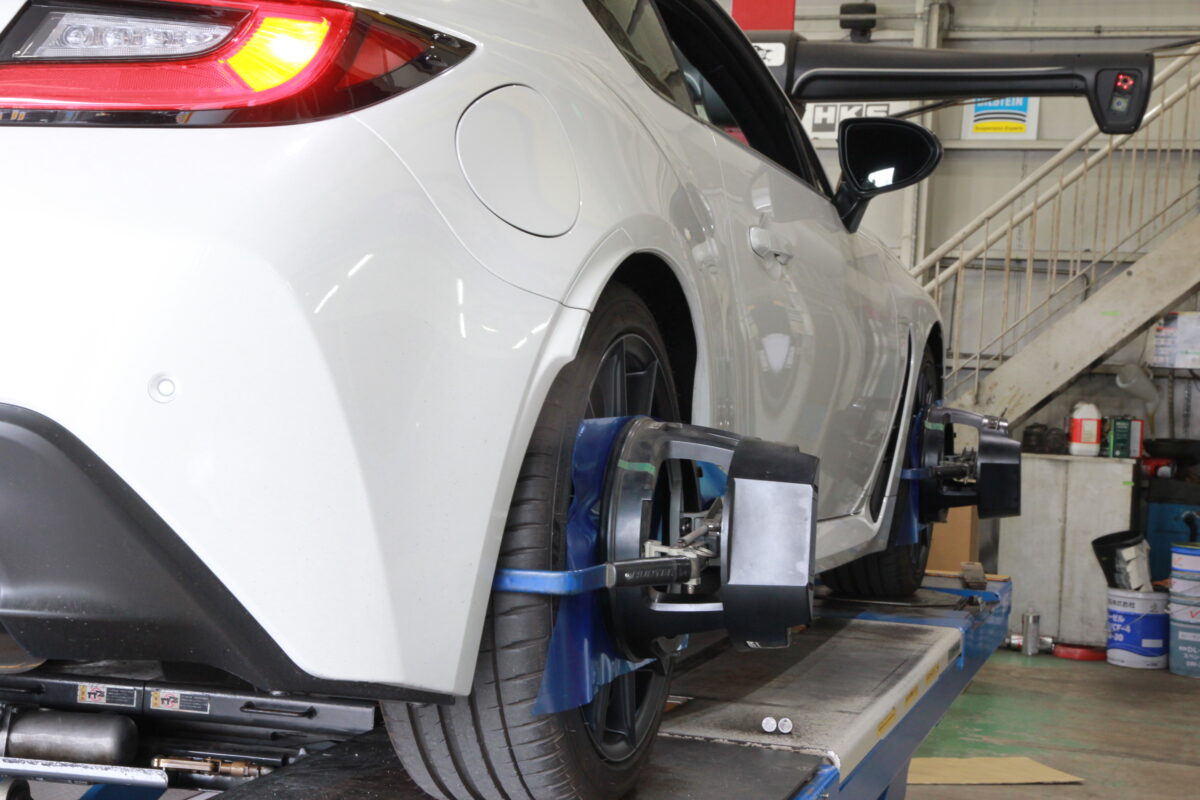 ダウンスプリングの装着でも省けないのが【アライメント測定・調整】
