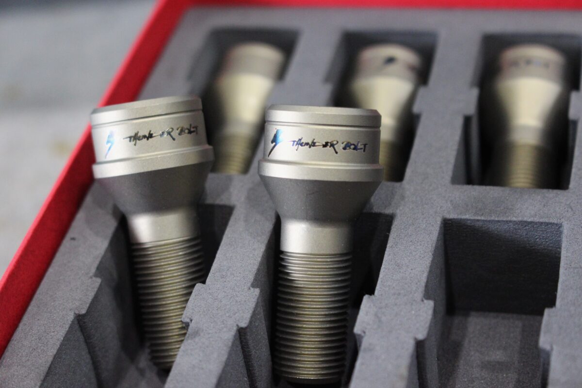 航空機グレードの6AL-4Vチタン合金を使用したホイールボルト”サンダアボルトBE ONE”純正のスチールボルトからの交換でバネ下重量の軽量化にも貢献!内掛けタイプなのでナットホールにキズが付くリスクも低減されるのもポイントです(*^^)v