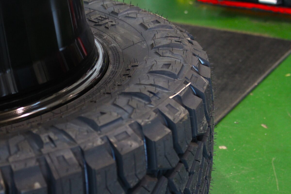 かなりゴツめなサイドウォール、トレッド面のブロックが特徴的な一品。