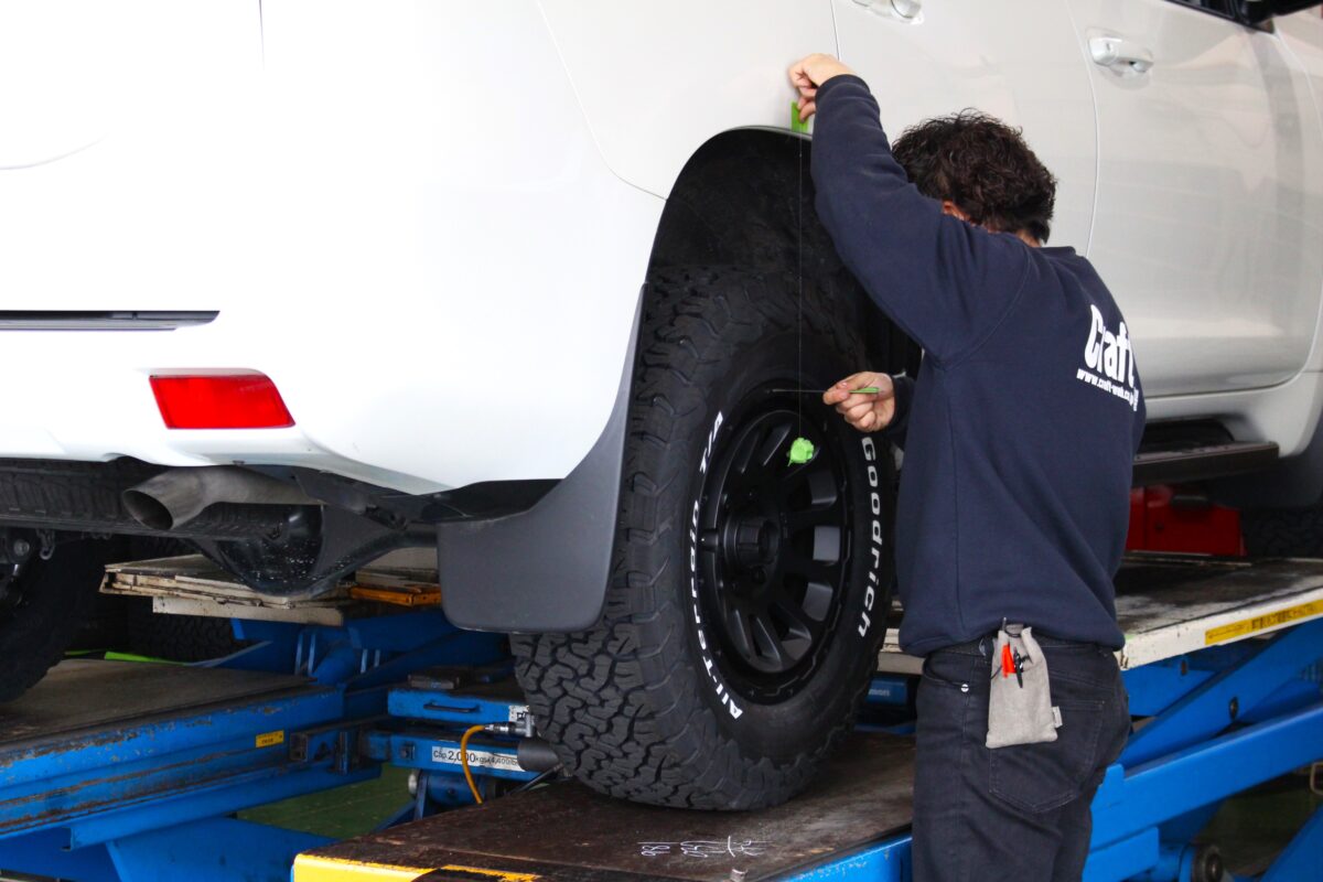 リフトアップキット、NEWタイヤ&ホイール取付の各STEPが完了したら最終仕上げへ。