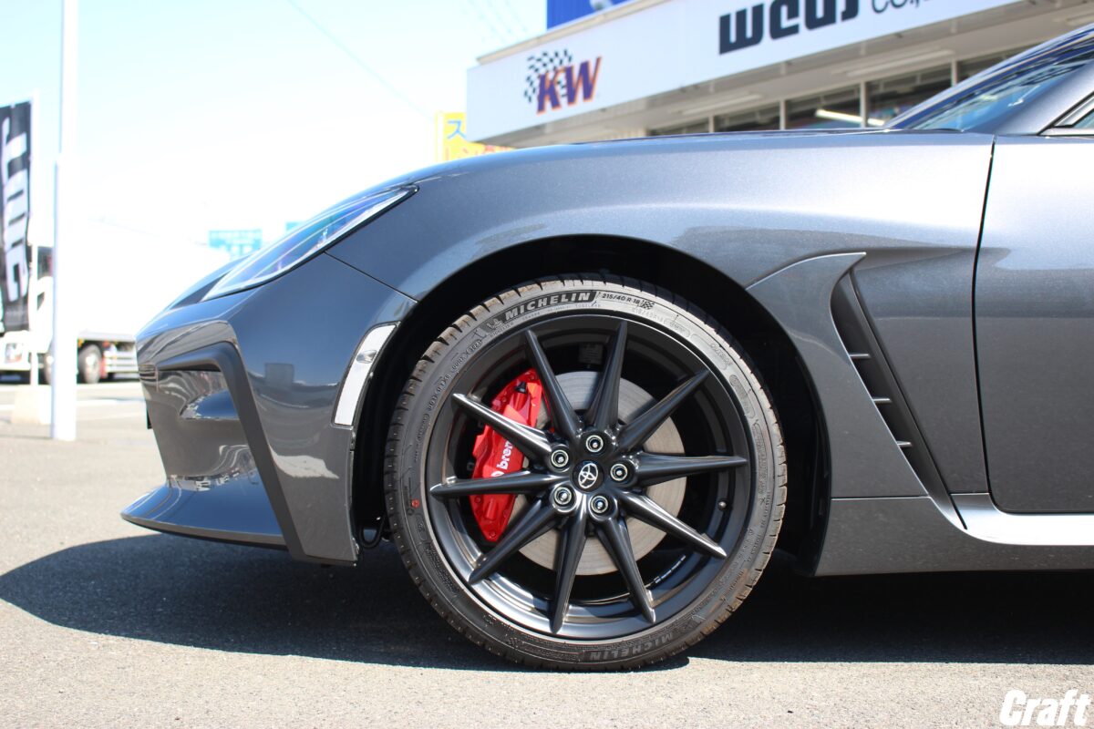今回ご紹介するお車はトヨタGR86。交換するアイテムはタイヤ・ホイール・車高調になります。