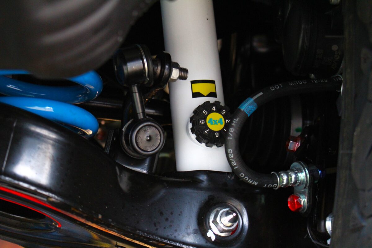 リア側には8段の減衰力調整機構を搭載。1段~8段の間で好みに応じたアシの硬さを調整可能。
