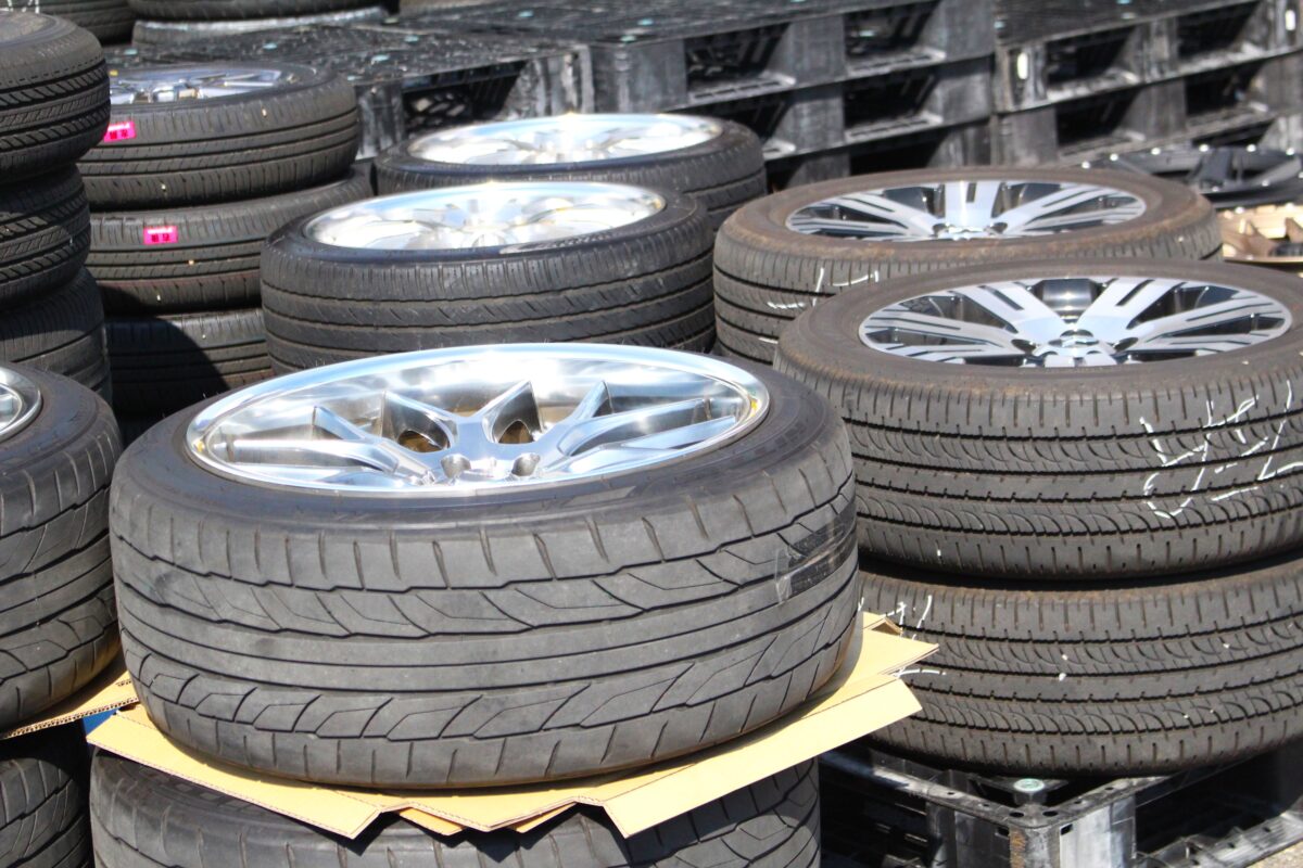 コチラはほんのイチブですが、皆様より買取・下取りをさせていただいたアルミホイールセット。