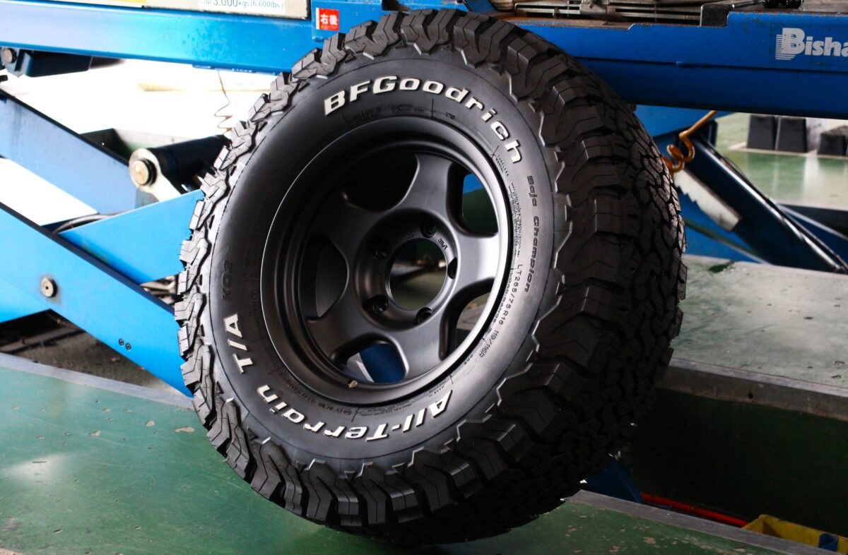 そこに組み合わせたタイヤは"BFグッドリッチT/A KO2"。Baja1000で培ったノウハウを反映した人気タイヤ。