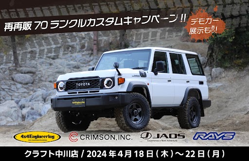 来週の週末には、4x4ES様のデモカー新型70ランクルを堂々展示!!!