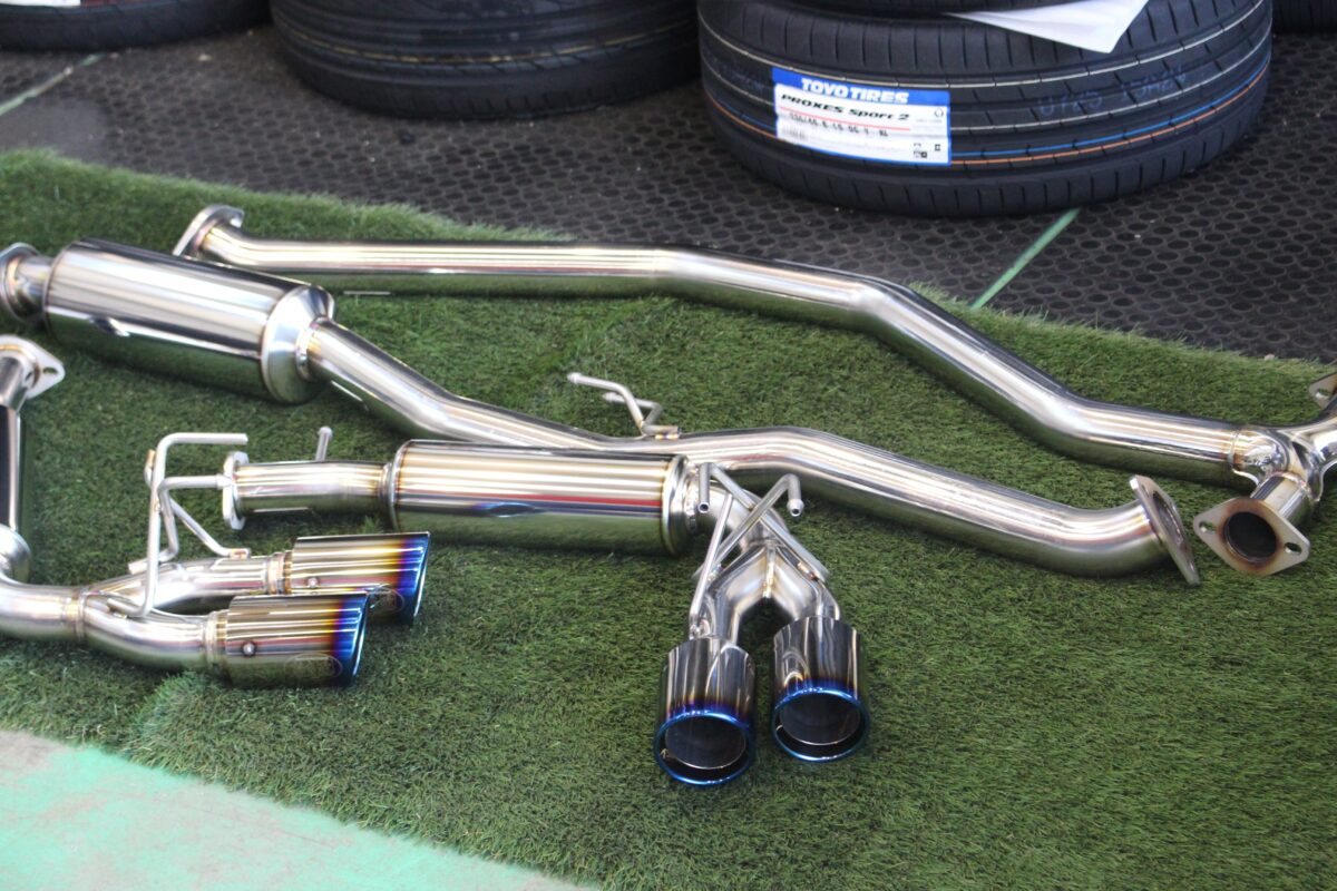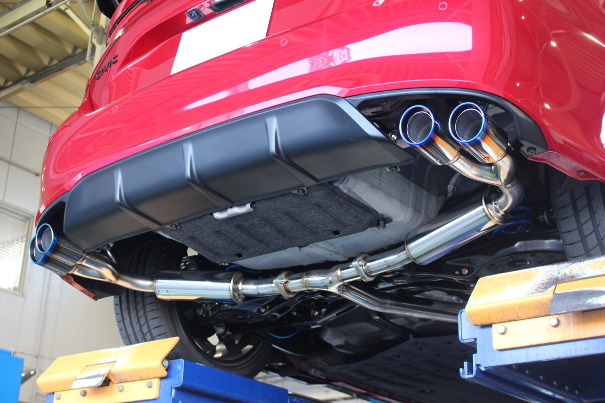 純正の長方形のマフラーフィニシャーを大胆に取り外し、左右2本出しに変化!エンドの焼け色も効いてスポーティーなリアビューに変化です♪
