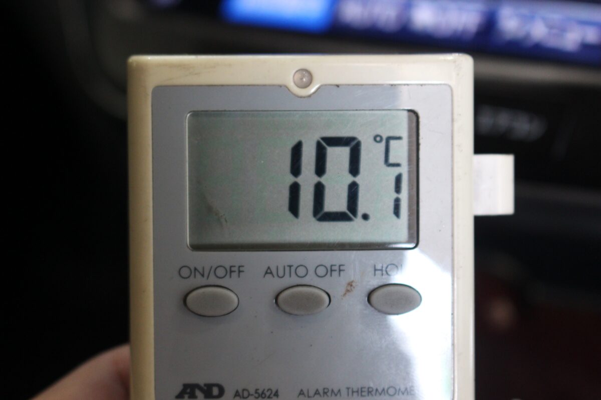 作業前の吹き出し口温度は”10.1℃”でした。冷たい風が感じられる温度ですが、ガスの残量はどうでしょうか…