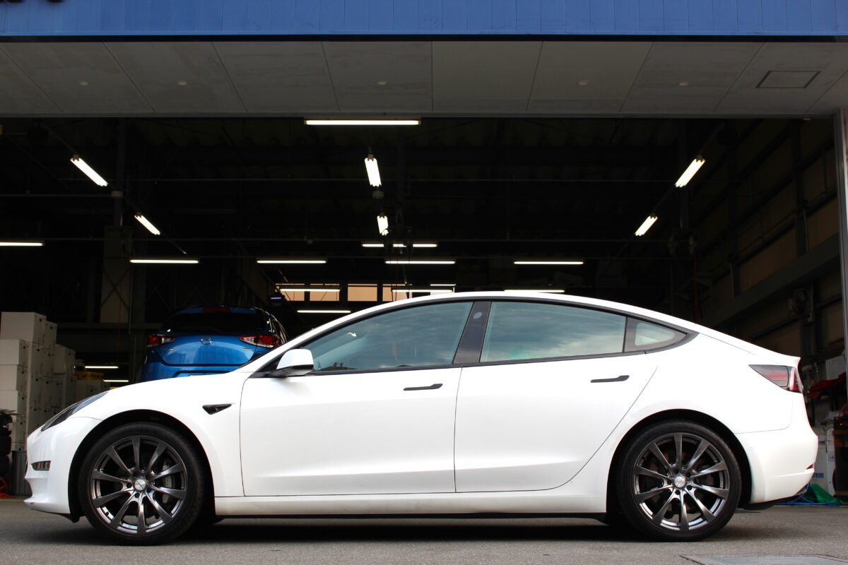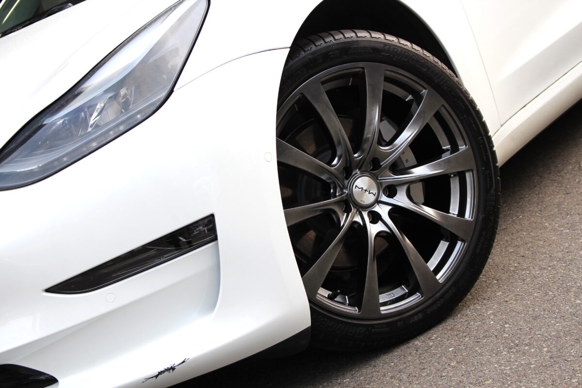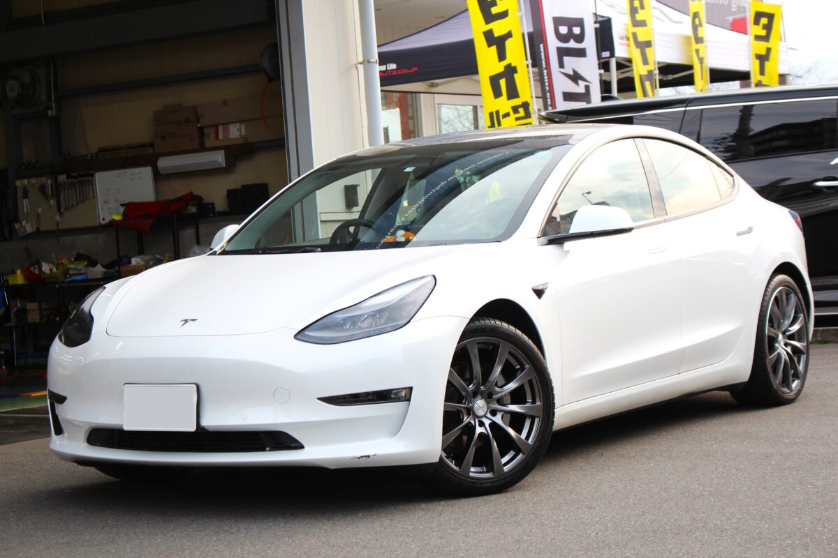 こちらのお車にはモデル3専用ホイールを取付させていただきました♪