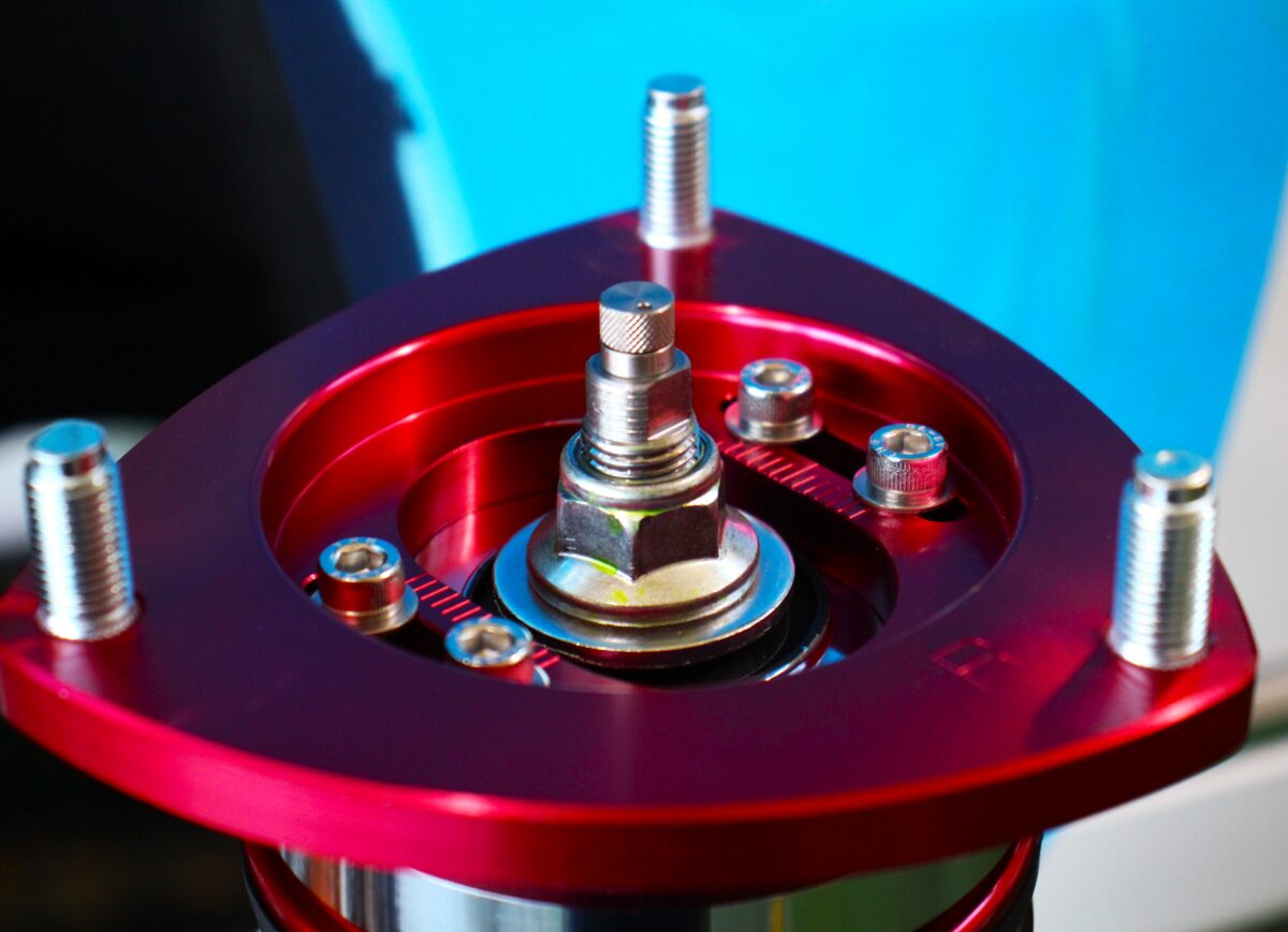 車種によりますが、キャンバー調整機構を有した専用マウントがセットされます。