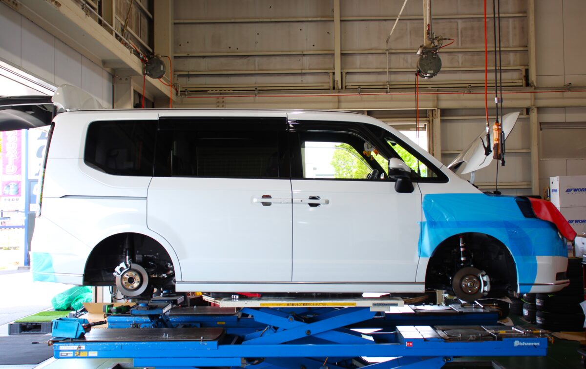 ■RP8 ステップワゴンe:HEV カスタム。タナベZT40 x レオニスWX 18in。車高調&ホイールで仕上げる。 初代・2代目を彷彿とさせるボックスシェイプな新型ステップワゴン(RP8)。 鈴鹿の土地柄ミニバンジャンルでのご来店台数では、上位に上る車種。 それ故に「他人と被らないように仕上げたい」とのご相談も定期的にいただいております。 クルマの外観を大幅に変えるパーツは… ・ローダウン(車高調やダウンサス) ・タイヤ&ホイール の2点が挙げられます。一つずつ順に進めていくのもアリですが、納車直後にトータルでカスタムを施すのもアリ。 本日ご紹介させていただくステップワゴンは、上記2点を詰めていきます。 その1【車高調】:タナベSUSTEC PRO ZT40 発進時や超低速時でも的確な減衰力を発生させ、安定した乗り心地を実現するTVS(ツインバルブシステム)を搭載。 KYB-カヤバ-製ダンパーと最適なレート設定のスプリングの組み合わせで、 快適な乗り心地を実現したSUSTEC PROシリーズの最高峰モデル。 車種によりますが、キャンバー調整機構を有した専用マウントがセットされます。 アライメント調整時において拡張性を持たせられるだけに拘り派の方も納得する仕様となっています。 また、走行ステージや用途に応じ、好みの乗り味に調整できる減衰力40段調整機構を搭載。 調整段数幅が広いため、アレコレと好みを探ってみるのもアリですネ。 また、耐ヘタリ性に優れたPRO210スプリングを採用。 軽量性にも優れているので、バネ下重量減にも繋がり乗り味向上も見込めます。 さて、その1の車高調取付が進む中、その2がコチラ… その2【タイヤ&ホイール】:ウェッズ レオニスWX 18in。 ウェッズ様の人気ブランド"レオニス"。 シリーズ内で根強い人気を誇るWXを選んでいただきました。 静止時でも動を感じられるヒネリデザインを採用。また、各々スポーク幅を変更することでシャープさも実現した一品。 カラーリングには、レオニスを代表するBMCMCを。 煌びやかさを持ちながら陰影感も併せ持った独特な色味が人気の秘訣。 飽きの来ないデザインとカラーで仕上げていきます。 その1・その2の仕上げに"アライメント作業"を行います。 フロント:トゥ・キャンバー 左右合計4か所を調整。 各部調整後ハンドルセンターを確認し完成です! WHEEL:ウェッズ レオニスWX 18in COLOR:BMCMC TIRE:ダンロップ ビューロVE304 SUS:タナベ SUSTEC PRO ZT40 【side view / BEFORE】 【side view / AFTER】 プレミアムライン専用17in→レオニスWX 18inへ。 1インチUPに加え、BEFORE→AFTERで35mmほど落ちた車高で纏まりあるフォルムへ変身。 真横から見た際でもヒネリ感満載のレオニスWXですが、やや斜めショットでは、より躍動感を感じられます。 センターサークル部付近でやや落ち込むシルエットも手伝って立体感もGOOD。 さて、足元を支えるにあたりタイヤも重要項目ですよね??選んでいただいたのは… "ダンロップ ビューロVE304"。 タイヤ内部にサイレントコアと呼ばれる特殊吸音スポンジを搭載することで、ロードノイズ低減に貢献。 かつ最適化されたトレッドパターンにより快適な車内空間を実現します。 運転手以外に同乗者へも配慮したい場合、タイヤ銘柄選びって結構重要。 コンフォート寄りに仕上げたい場合にも"ビューロ"おススメでございます。 エクストラロード規格にも対応していますので、新型ステップワゴンにもOK。 アシ・タイヤ&ホイールの2点を詰め生まれ変わったステップワゴン。 勿論、ツラも狙って仕上げさせていただきましたので、見ため・乗り心地共に死角なし。 オーナー様にもお喜びいただけましたヨ! この度も当店のご利用誠にありがとうございました! また、次カスタムのご相談もお待ちしております。   新型ステップワゴンのカスタムご相談も当店まで。 皆様からのお問い合わせをお待ちしております。   集まれっ!スポーツカー乗り!【ENKEI ホイールフェス!】2024年5月3日(金)~5月12日(日)開催! ADVAN Racing集結!【ADVAN Racing ホイール展示会】2024年5月18日(土)~5月26日(日)2weeks開催!