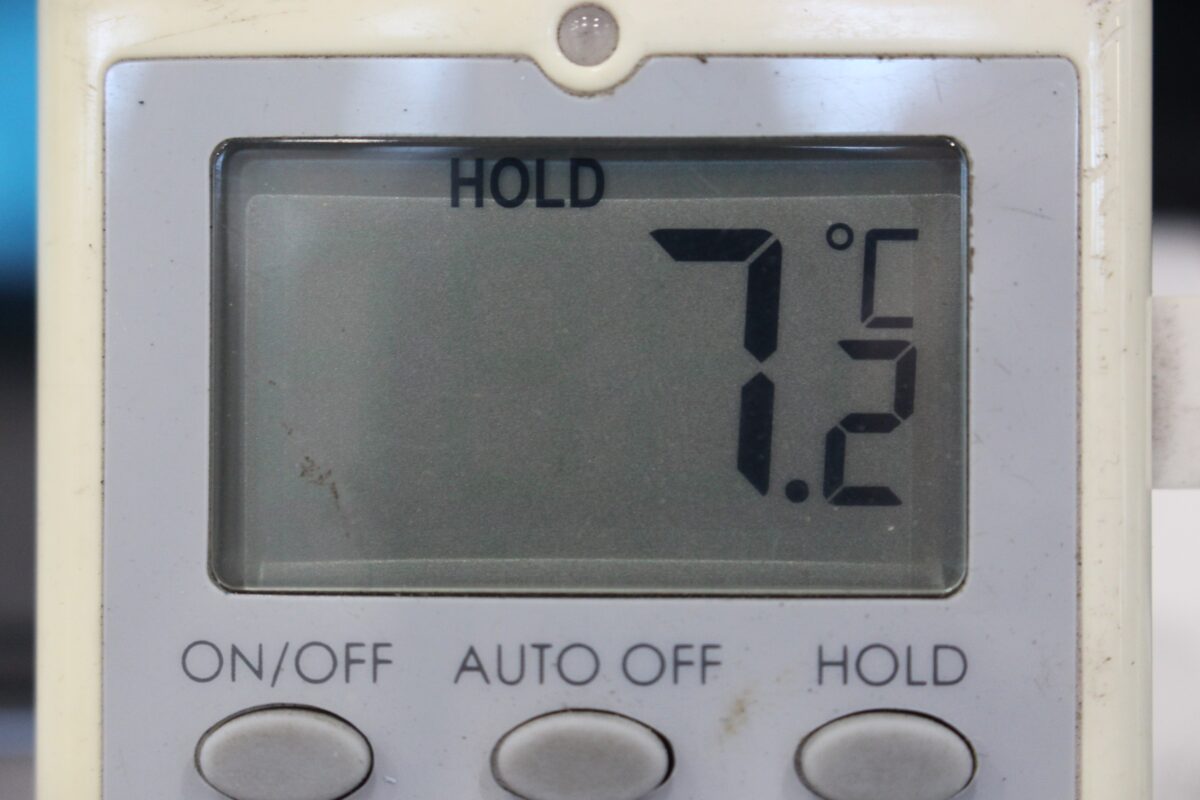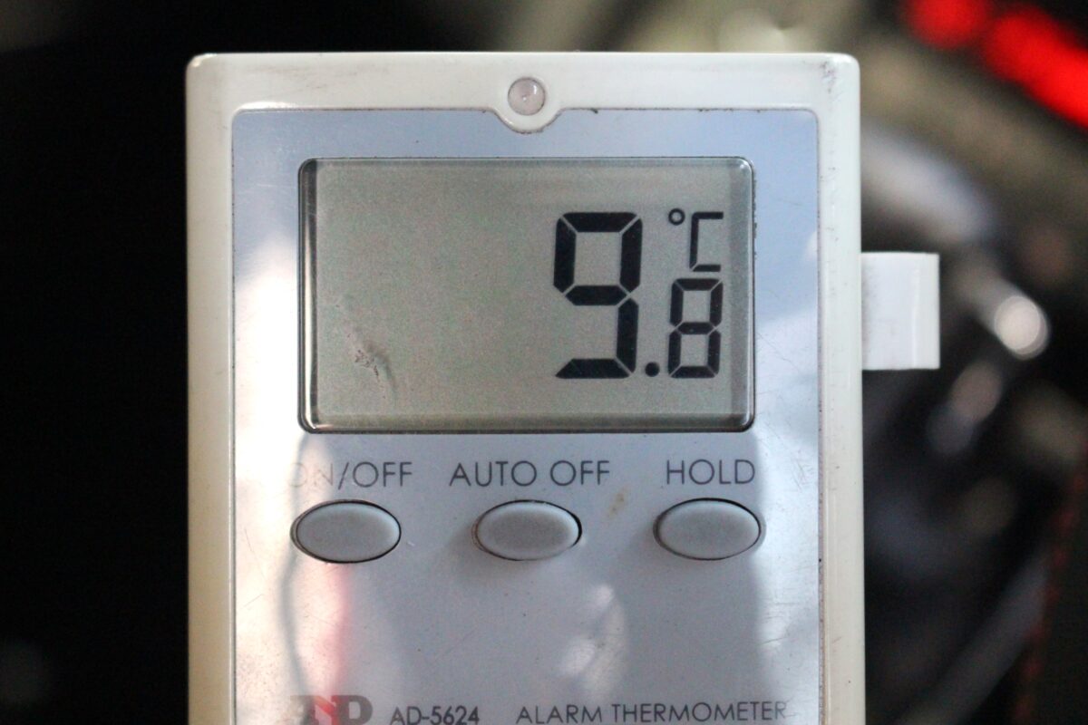 作業前のエアコン吹き出し口温度は「9.8℃」